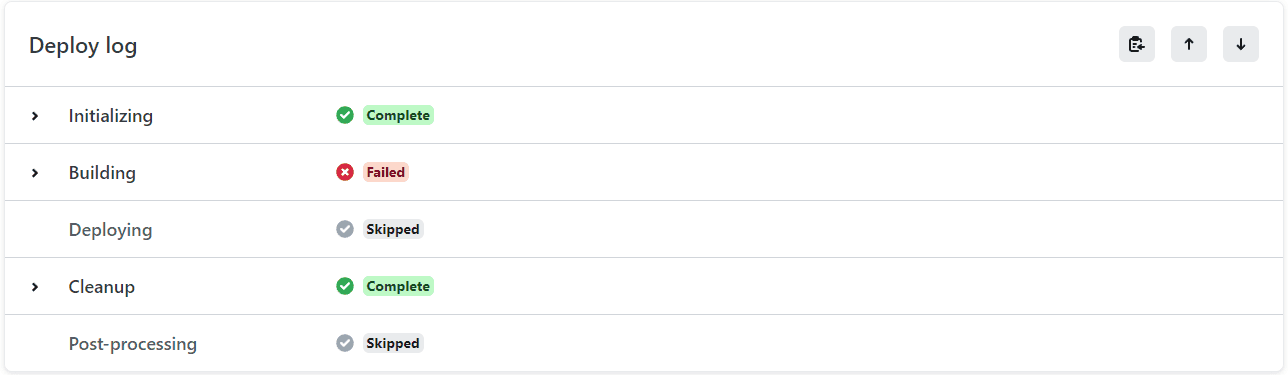 問題發生在 Building 這個環節,把 log 展開來看, 錯誤很清楚的顯示要建置 Gatsby 專案要求 Node.js v18.0.0 以上版本,但環境上的版本為 v16.20.0